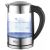 Стеклянная ёмкость не выделяет в воду химических веществ при нагреве до высокой температуры. Деления позволяют отследить уровень воды в чайнике. В процессе кипячения внутри включается атмосферная подсветка, которая позволяет скрасить ожидание.
